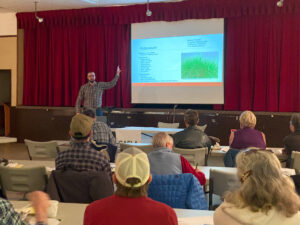 After lunch Mark Hagen, Account Manager of Brett Young Seeds, took the stage to present Forage Blends and Species from the Soil Up. Hagen’s presentation featured the factors to consider when selecting the right forages for your land, and how soil sampling can affect your fertilizing plans. He went into detail specifically about Alfalfa root types and the difference those roots could mean for your field. The 2025 Brett Young Forage Guide illustrates alfalfa tendencies and types, along with fall dormancy and winter hardiness, as well as adaptability for PH in soils.